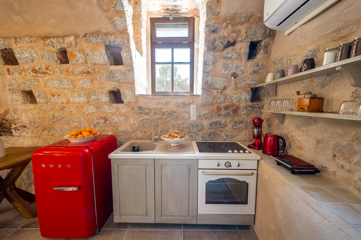 Κομψό διαμέρισμα με σαλόνι, υπνοδωμάτιο και ιδιωτική βεράντα με θέα στους πύργους και τα βουνά. Περιλαμβάνει κουζίνα.